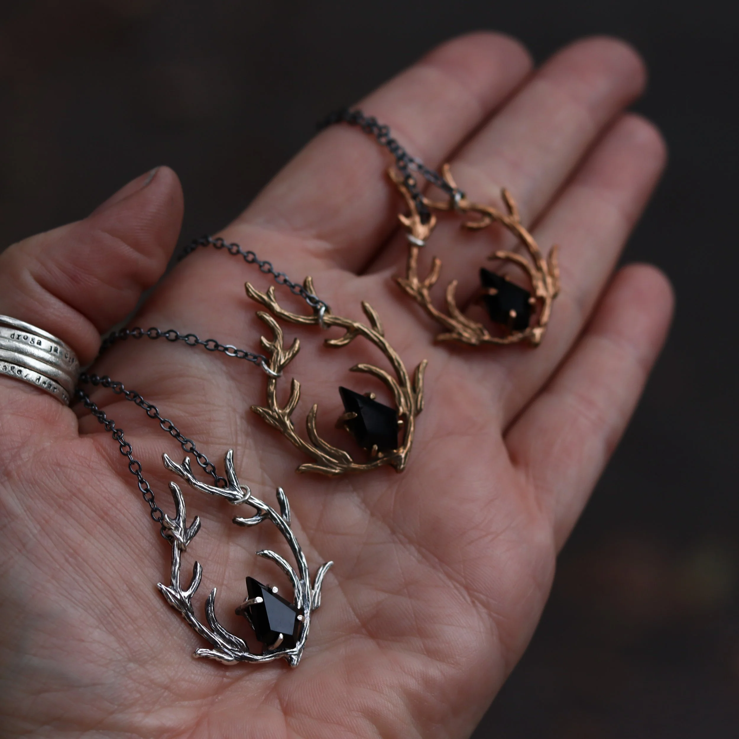 Metals | Solid Silver, Red Bronze (rose gold), Ancient Bronze (tarnished gold), Yellow Bronze (bright gold)